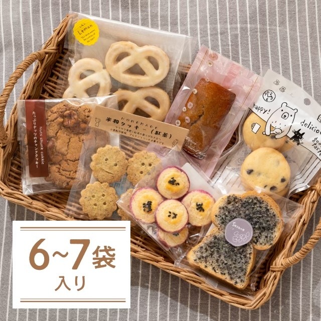 「【定期便】お楽しみセット」のお試し便です。 定期便と同様の内容で1回のみお届けします。 気に入っていただけましたら是非、定期便をご利用ください◎ ____________________________________________ 大阪府内の福祉施設で作られたおすすめの焼菓子 食べきりサイズのお菓子を6~7種詰め合わせ。 さまざまな施設のお菓子をセレクト! どんなお菓子が届くかはお楽しみ! ※写真のお菓子はイメージです。 ※ご用意できる数に限りがありますので、締切前でも売り切れとなる場合があります。 ---------------------------------------------- お菓子入り数:6~7袋(お菓子の種類によって変わります) ★2025/11/1~11/14注文受付→2025/12/4(木)発送 ★予定数に達し次第終了 ---------------------------------------------- ■発送 郵便「クリックポスト」にて発送いたします。 郵便受けでのお受け取り(ポストの形状による) お届け日時の指定はできません。 (目安:発送より1〜2日での配達。大阪から遠方の場合はさらに日数がかかる場合があります) リーズナブルにお届けするため、薄型の箱にて配送させていただきます。 お菓子の性質上、配送中に割れてしまう場合もありますがご了承ください。 ■箱のサイズ 34×23×3cm ■賞味期限 発送日より10日から4週間程度(お菓子の種類による) マドレーヌ、パウンドケーキ等は短め、 クッキー、ラスク等は比較的長めです。 色んな種類のお菓子を詰め合わせてお届けします。 ■注意 ・ギフト包装の対応はしておりません。
